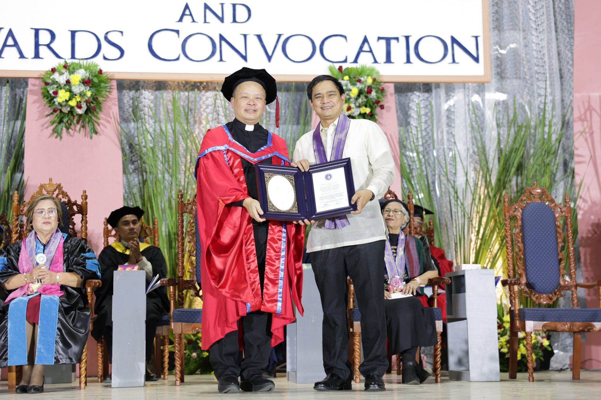 Let me be clear, dear friends, dear graduates. I am not a warmonger or a doomsday sayer. This rather morbid perspective is part of our faith, a faith that is not sterile but alive, a faith that is not passive but active, a faith that is a gift but also a task. Indeed there was a time we were known as the Church militant. Every time we teach values, or elucidate the truth, or show kindness, we are keeping the evil in this world at bay. For his part, Ignatius, who was a soldier, would tell us: every moment, every second, every day, we are engaged in a spiritual warfare. The forces of good and evil are trying to win us over their side. It is in this spiritual warfare that the future of the world rests. Which side would you choose? Which pill would you take—the blue pill that is all illusion or the red pill that embraces the hard reality of life? The good news, fellow Ateneans, we have been trained and formed for this work, intellectually, emotionally, and spiritually. And we Bicolanos are cut out for this fight as well. Bishop Barlin had blazed the trail for us.